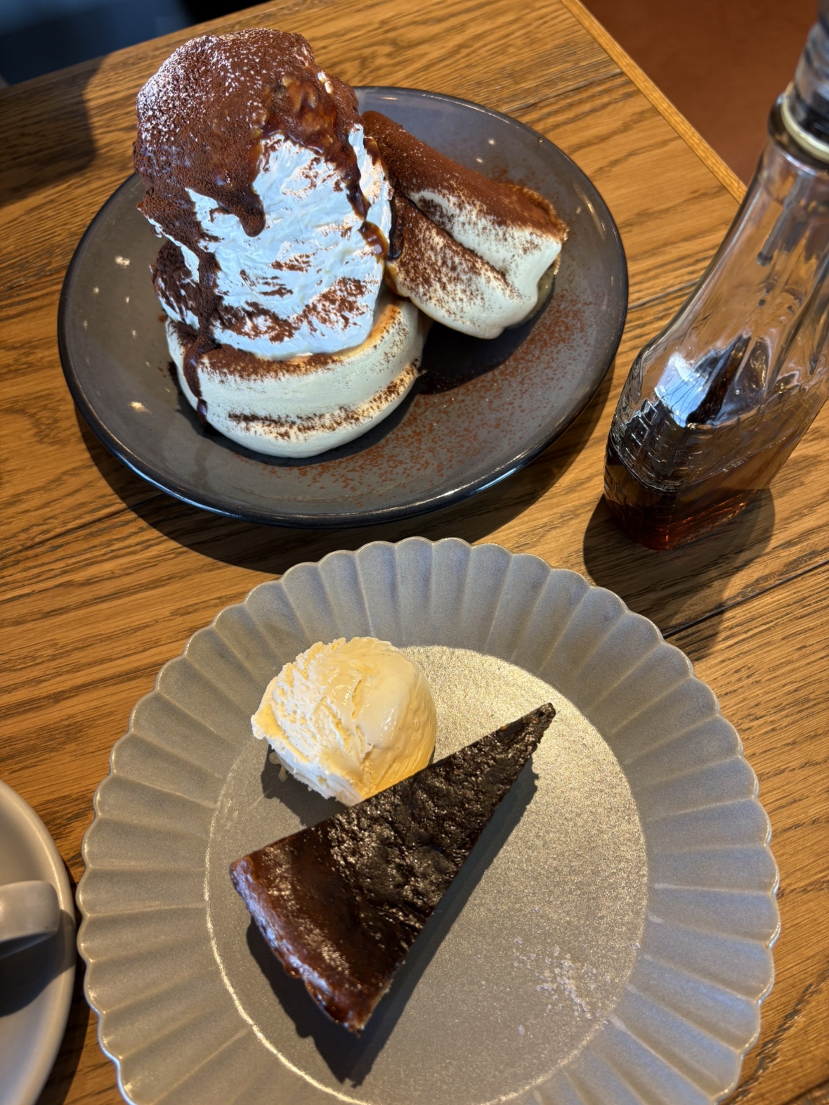 メニューを眺めて、迷った末に選んだのはパンケーキとバスクチーズケーキ。
