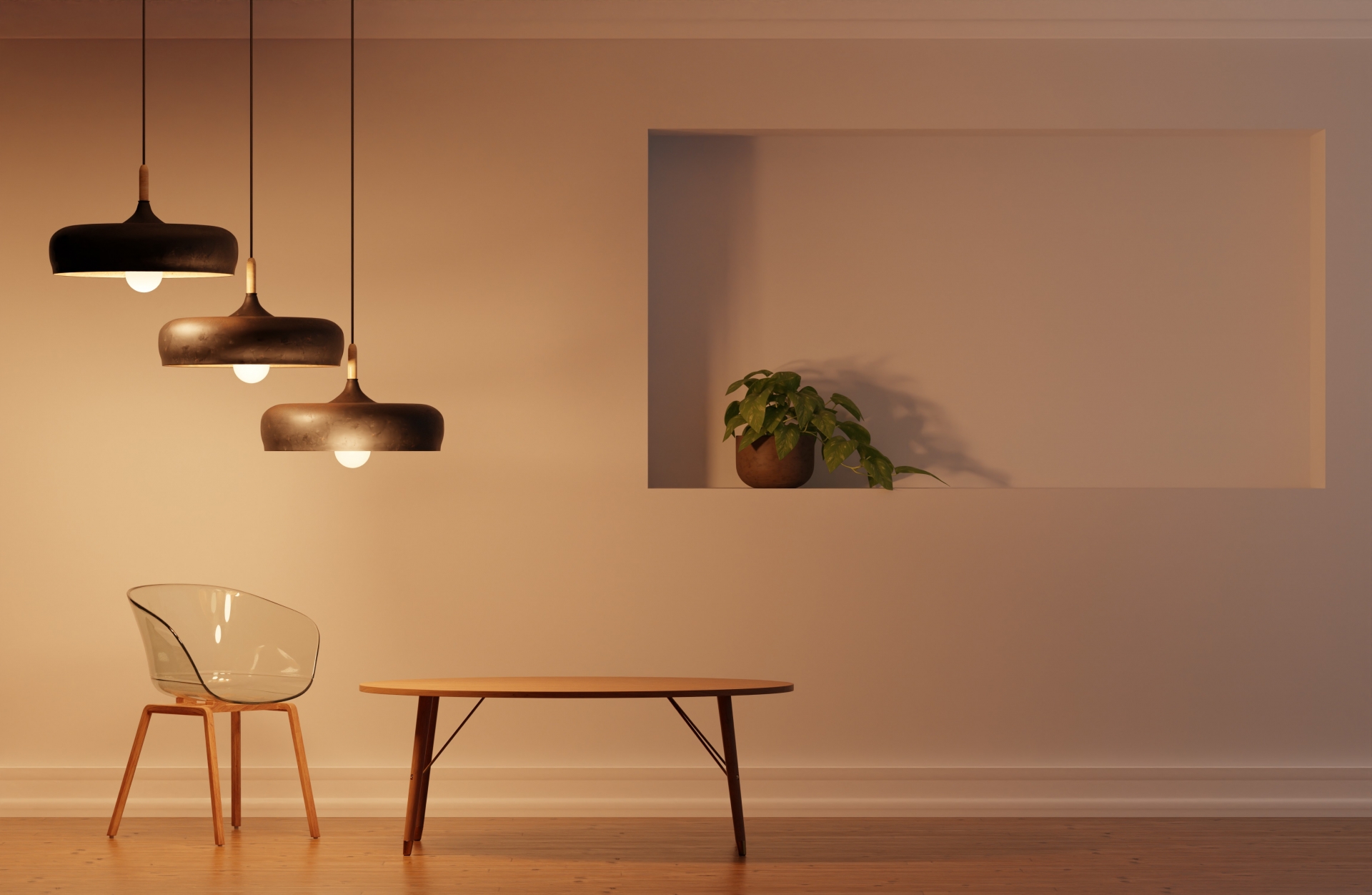 落ち着いた色調の壁と、効果的に配置された間接照明。