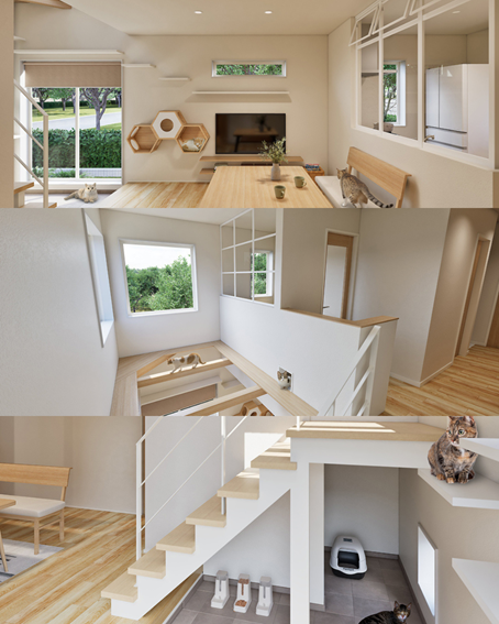 猫がリラックスできる居場所を随所に設けました 。