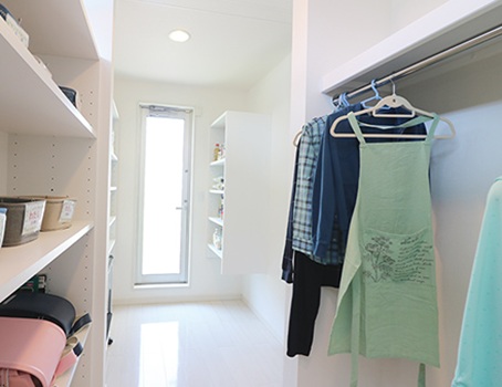 - 動線上の収納:玄関からクローク、洗面所へと続く動線に収納を設けることで、「自分のコトは自分でやる」が習慣化し、リビングにモノが散らかりにくくなります。(→次々回に詳しくご紹介します)