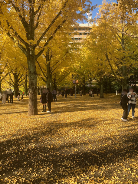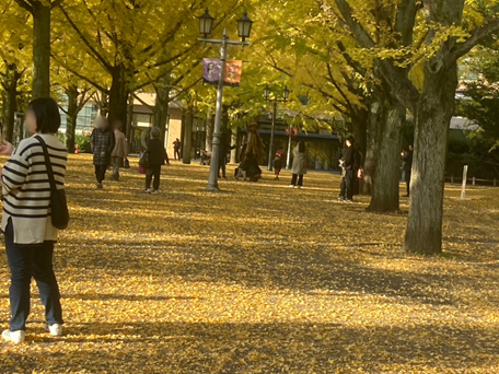 地面に落ちているイチョウの葉が、太陽の光を浴びてキラキラと輝いていて、踏むのが申し訳なく思うくらいキレイでした。🍂💛