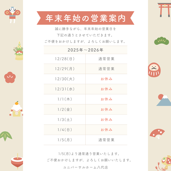 休業期間中にいただいたお問い合わせにつきましては、1月5日(月)以降、順次対応させていただきます。