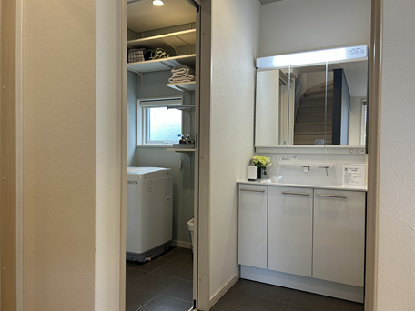 【八代店モデルハウスのご紹介】ワンフロアがつなぐ、美しく豊かな平屋の暮らし-洗面・脱衣所編-