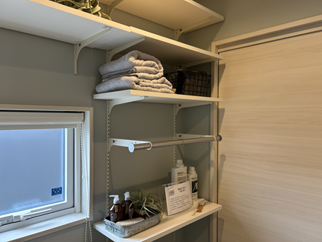 タオルや着替え、洗剤のストックなどをたっぷり収納できるので、いつでも片付いた空間をキープできます。