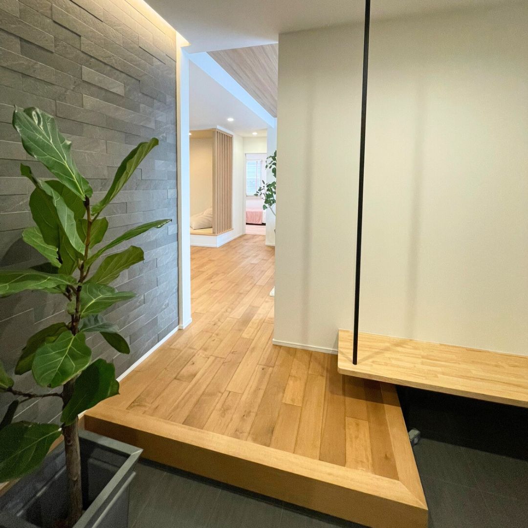 玄関ドアの先に続く、奥行きのあるホール