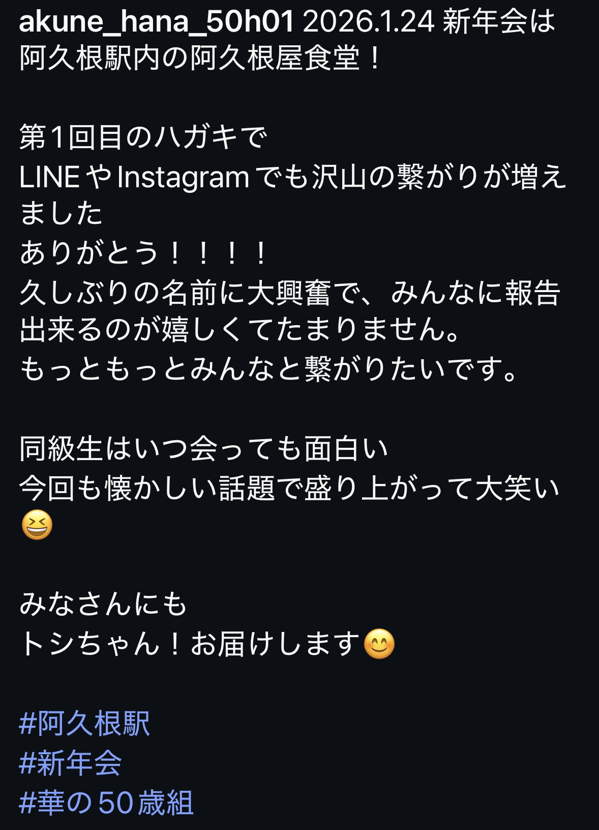 地元小学校今年満50才になる同級生で新年会を開催しました。