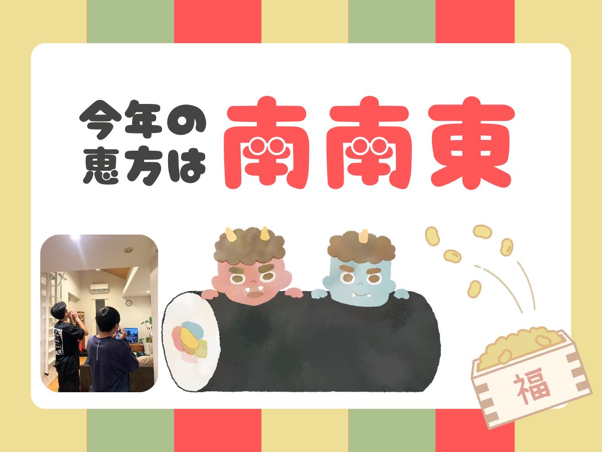 「今年の恵方は東北東だよね?」と確認して、みんなで無言でパクパク(笑)