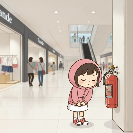 1階から2階まで、全フロアに設置されている消火器一つひとつに、 「こんにちは」とお辞儀をしながら丁寧にごあいさつ。🙇♀️✨