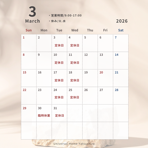 八代店 manager 【カレンダー】-八代店-3月の営業日のお知らせ 2026.02.28 カレンダー Author 八代店 manager 記事一覧 【上棟式レポート】T様邸 上棟式を執り行いました! いよいよ夢のマイホームのカタチが見えてきました! 三大建設のこと現場での出来事現場の進捗 2026.02.28 【コラム】60年先も、家族を守り抜く。高性能外壁材ALCの真価 -第3回(最終回)- コラム家づくり 2026.02.26