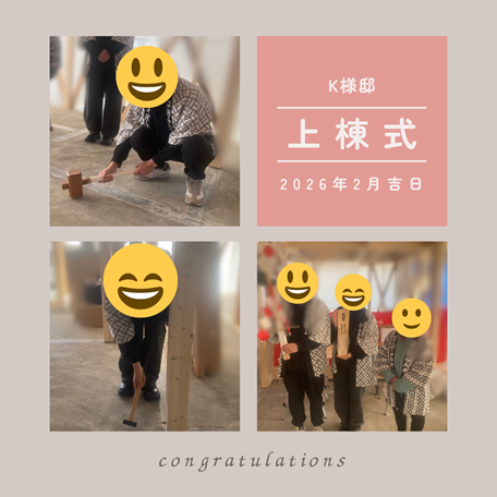 K様、この度は上棟、誠におめでとうございます!🎊