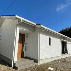- 木目調の玄関ドアは別角度から見ても格好いい仕上がり