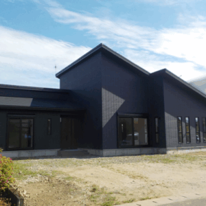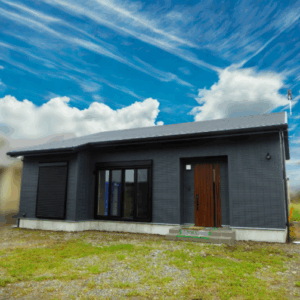 • 明るい茶系の外壁と濃いめの木目調のドアがおしゃれ