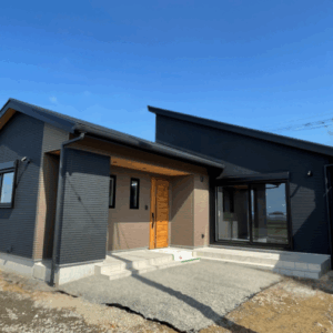 - 黒系1色で、四角い箱型のスタイリッシュな感じに仕上げ、どこから見ても四角いお家でカッコいいですね。