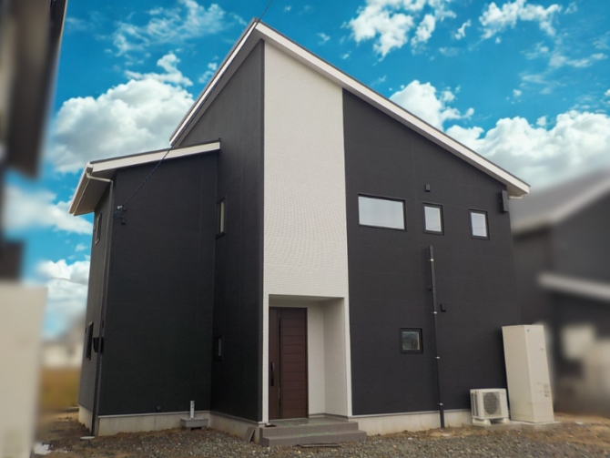 色はベースのブラック系にホワイトでアクセントを。段違い屋根のシャープな外観