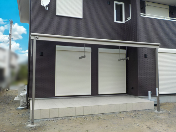 リビング前に広々テラスを。屋根付きなので突然の雨でも大丈夫。安心して洗濯物が干せます