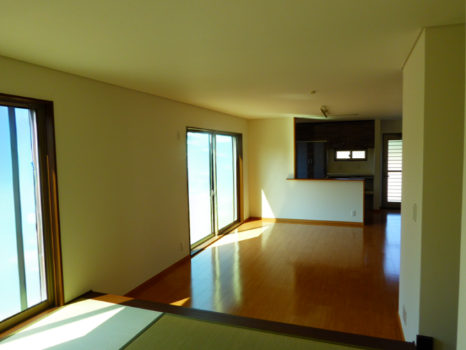 • 南に面したLDK。2ヶ所の大きな窓から入ってくる光が開放感と明るさを演出します