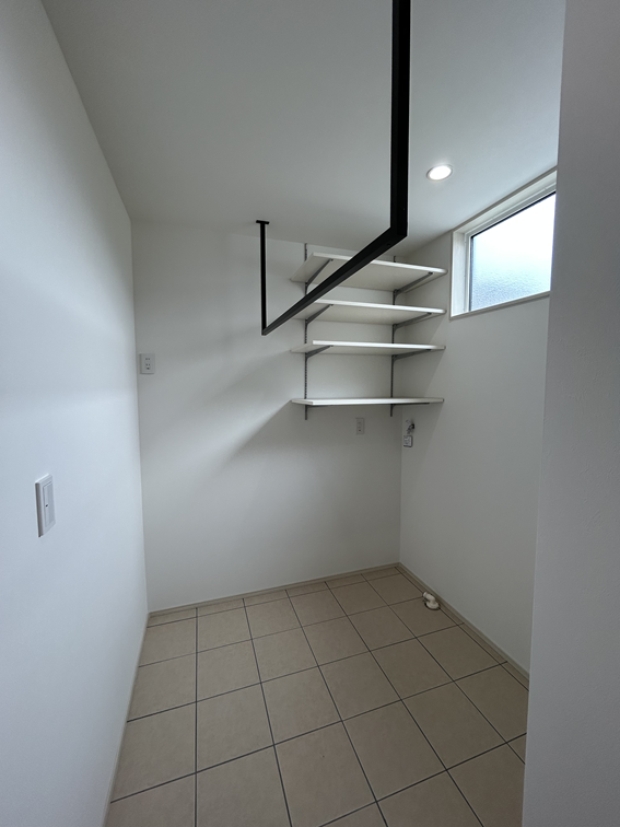 - 【ランドリールーム】独立したランドリールーム。天候を気にせず洗濯・乾燥・室内干しができ、家事をスムーズに。洗面脱衣室と隣接し、効率的な水回り動線を実現します。
