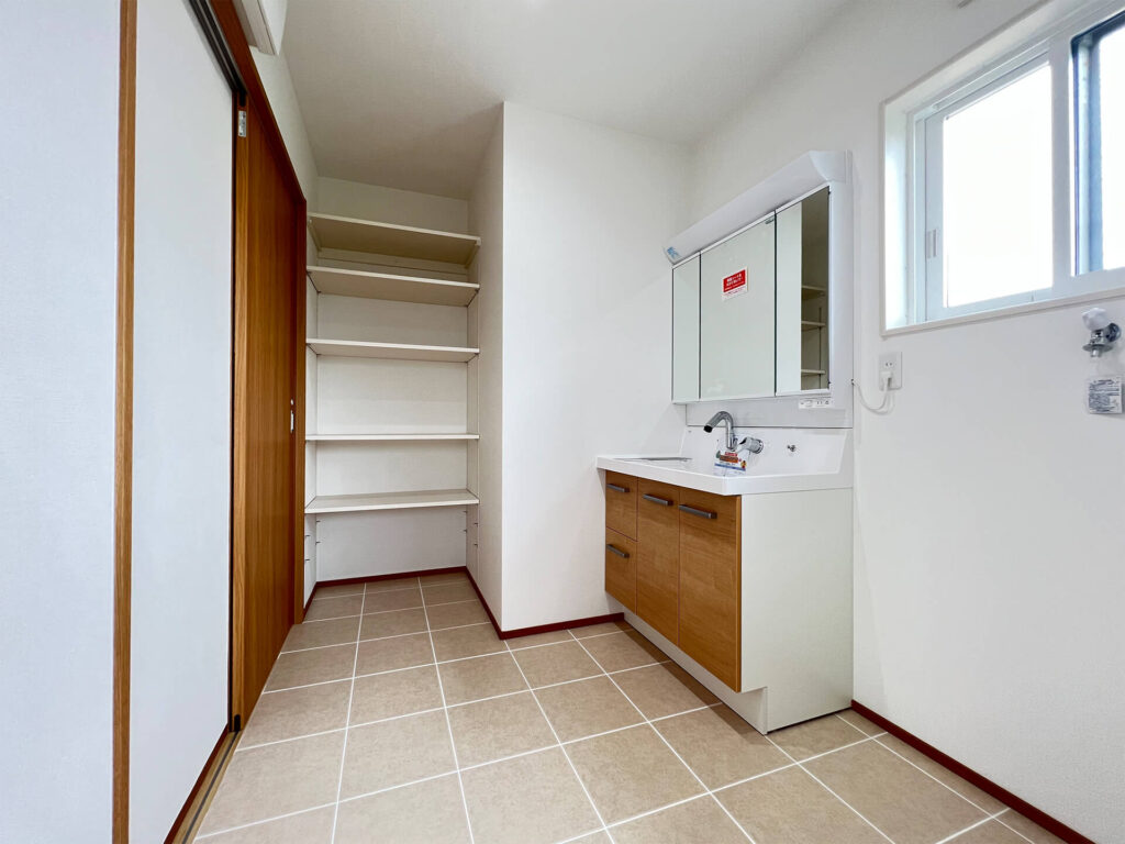 洗面にも収納を設け、使い勝手の良いスペース