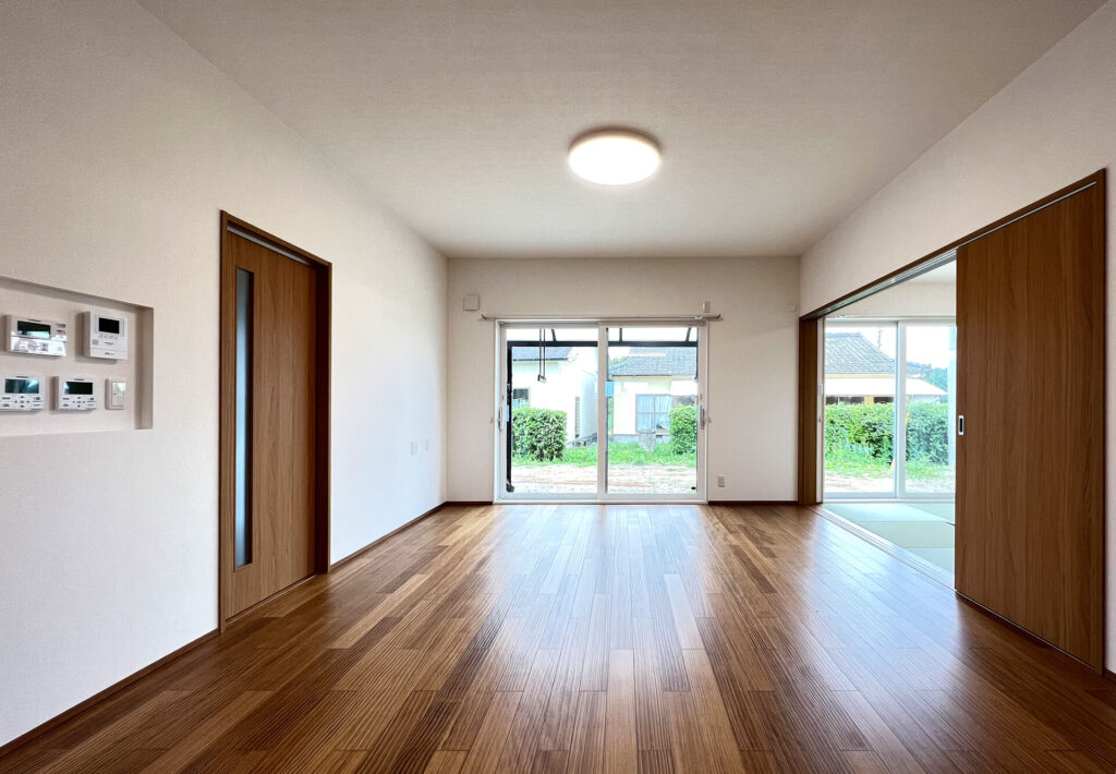 リビングは広く、和室も繋がるので更に広いスペース