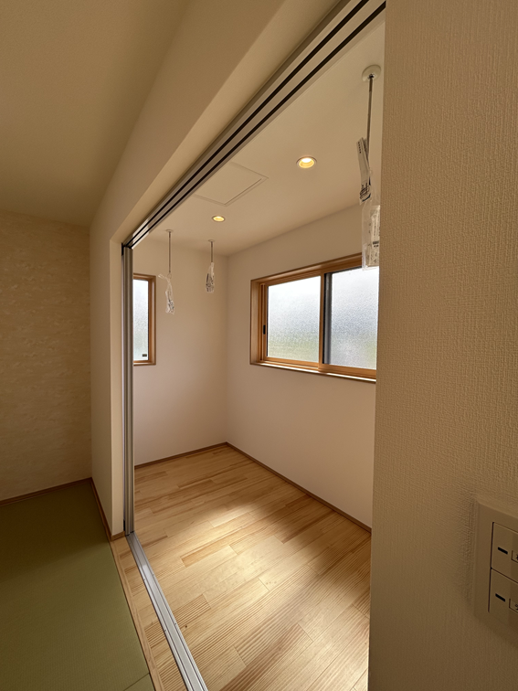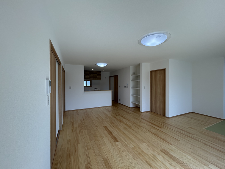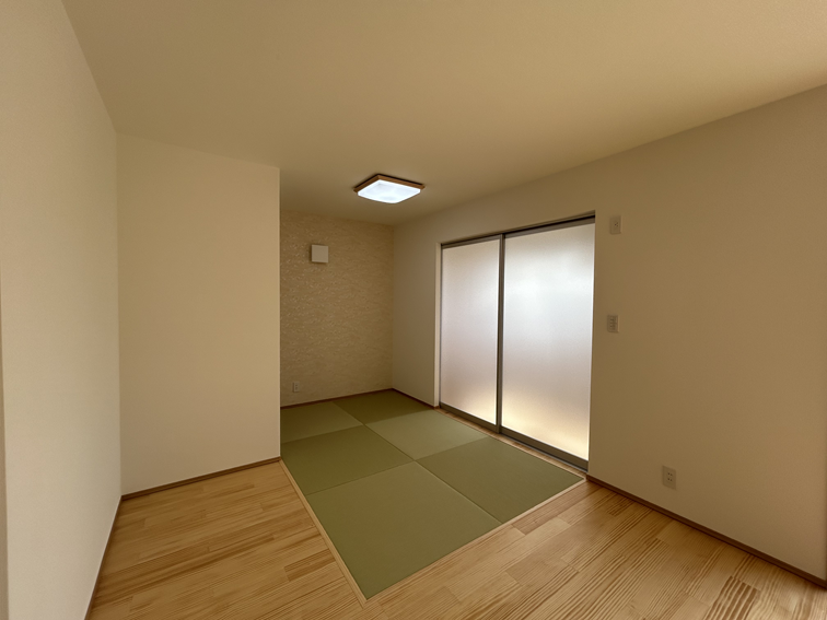 LDKの一角には、グリーンの琉球畳を使用した落ち着きのあるタタミコーナーを設置。