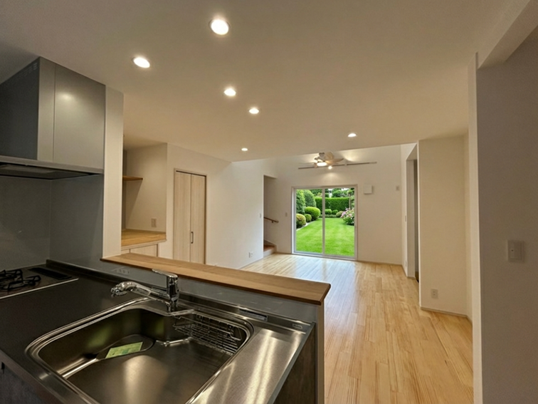 広々としたLDKは、家族が自然と集まる明るい空間です。