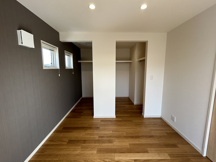クローゼットを2つ備えた主寝室。