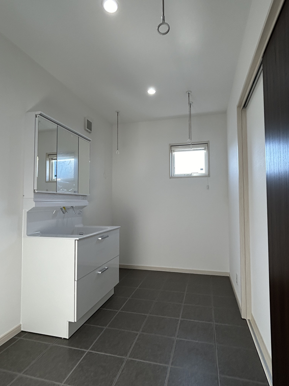 広さ3.9帖の洗面所は、雨の日も安心な室内干しスペースとしても活躍します。