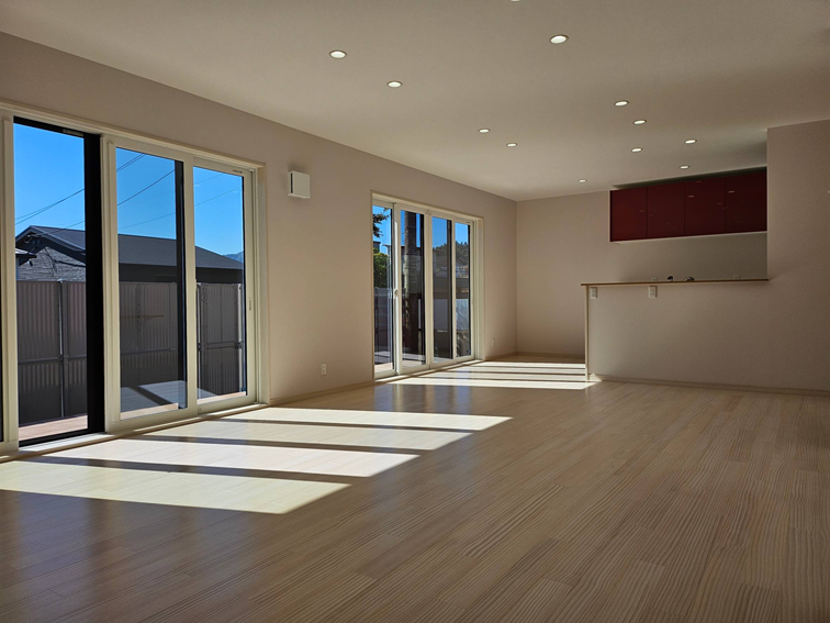 LDKとフラットにつながることで、内と外が一体となり、開放感のある空間が広がります。