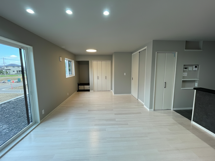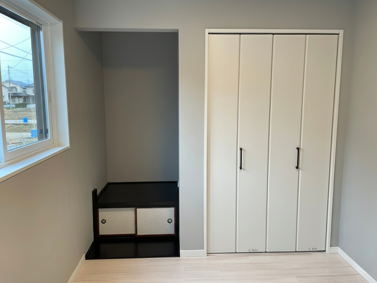 広々とした空間に、仏壇置き場と収納スペースを設置しました。