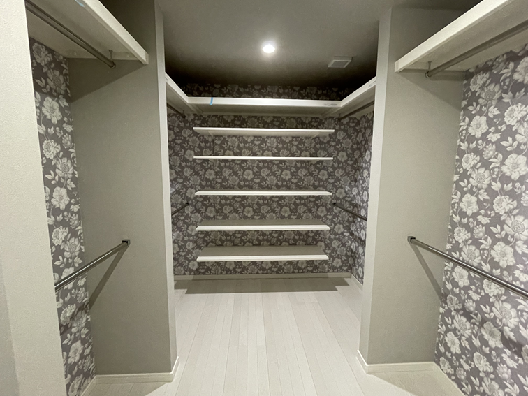 家族みんなの衣類をまとめて収納できる5.3帖の大型ファミリークローク。
