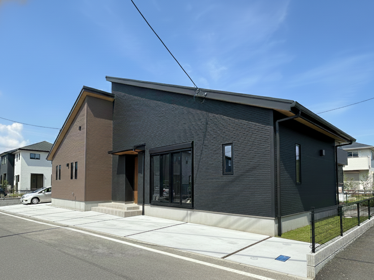 個性的な屋根形状とシックなツートンカラーの調和により、永く愛されるハイセンスな佇まいを実現しました。