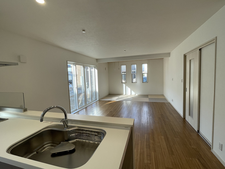 LDKと畳コーナーはあえて仕切りを設けず、広々とした開放感あふれる空間にしました。