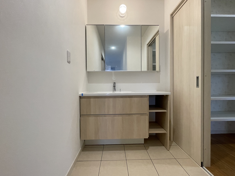 さらに、このパントリーは洗面所と繋がっており、家事の動線をスムーズにする工夫が凝らされています。