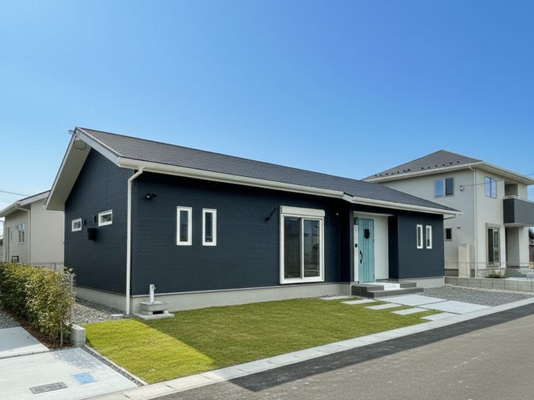 空に映えるブルーの外壁が、さわやかで個性的な印象を与えます。
