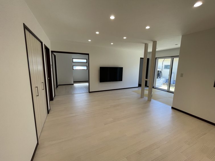 リビングの横には畳コーナーを設け、仕切りをなくすことで開放感あふれる空間になりました。