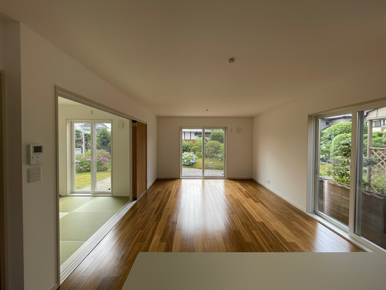 リビングに隣接した和室は、来客時やお子様の遊び場として、多目的に活用できます。