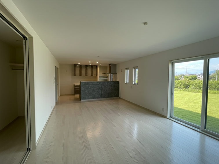 21.8帖の広々としたLDKは、南側から差し込む光でいつも明るい空間です。