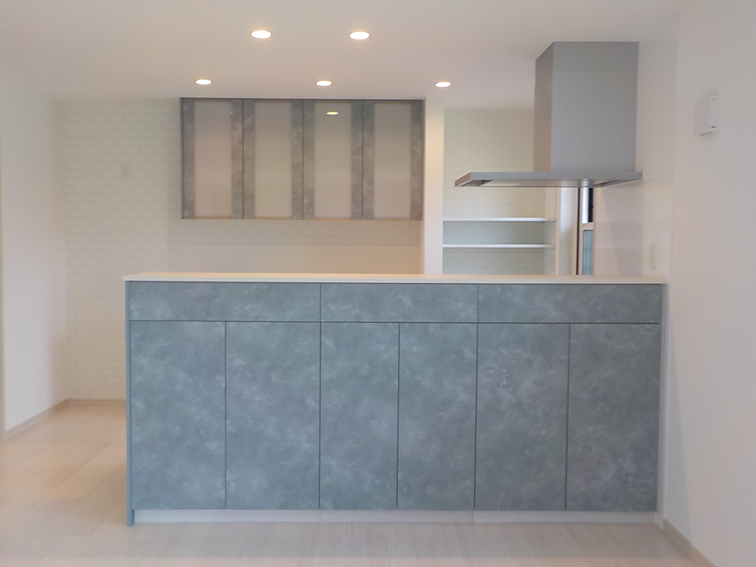 グレーの面材がモダンな雰囲気のキッチン。