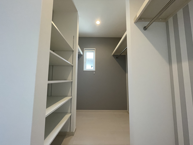 6㎡の広々としたウォークインクローゼットは、夫婦の衣類をまとめて収納できる大容量のスペースです。