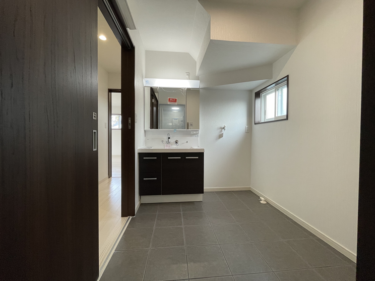 広めに設計された洗面脱衣所は、ゆとりのある空間で朝の身支度もスムーズに。