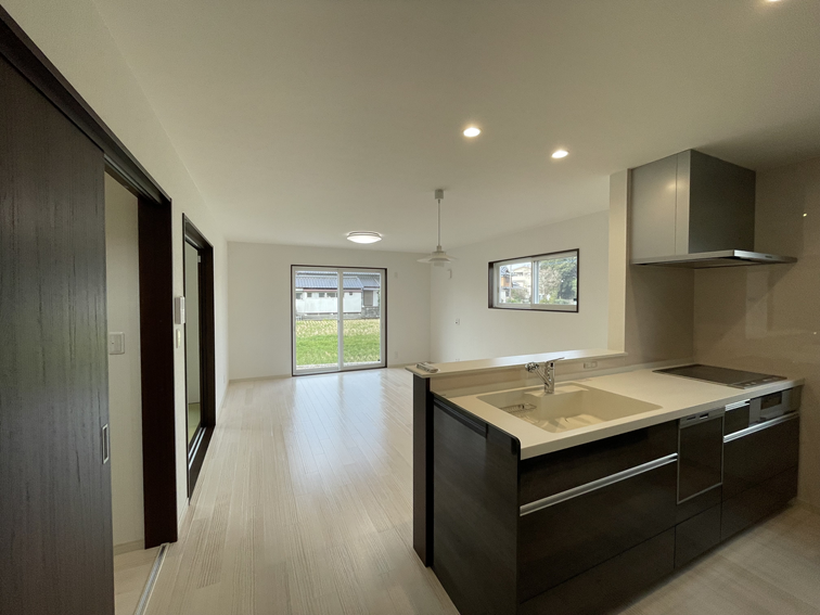 約16.9帖のLDKは、家族が自然と集まる明るく開放的な空間です。