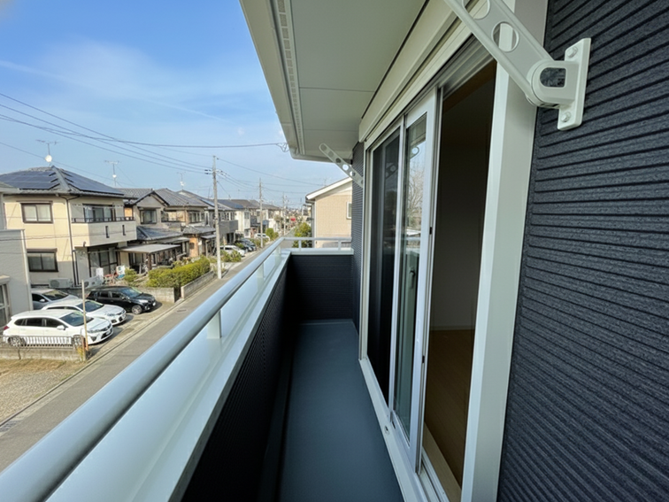 4㎡のバルコニーは、洗濯物を干したり、布団を干したりするのに十分な広さです。