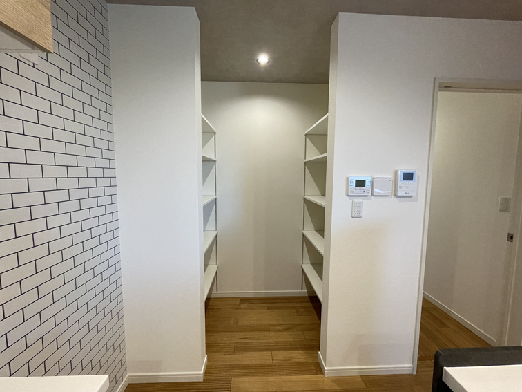 キッチンの横には、まとめ買いした食品や日用品をストックできるパントリーを設けました。