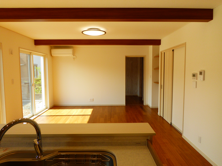 デザイン性の高い見せ梁が、空間にアクセントを加えています。