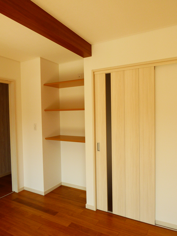 1か所固定棚を設け、お気に入りの小物や本を飾ることができます。