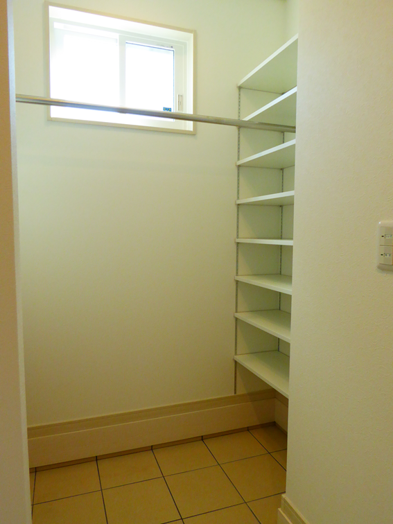 玄関の横に設けたシューズインクロークは、可動棚とハンガーパイプを設置し、家族の靴やアウターをすっきりと収納できます。