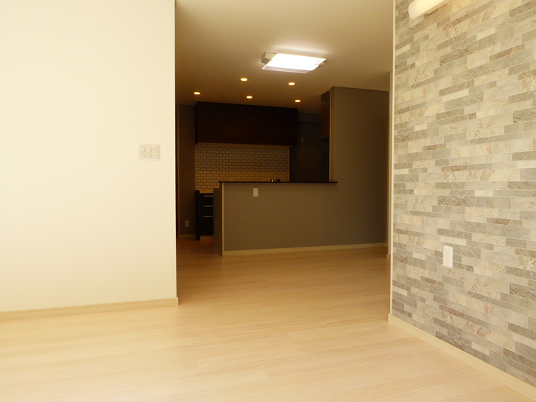 ダイニングキッチンとリビングを緩やかに分離させたLDKです。