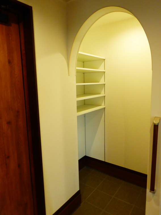 玄関から続くシューズインクロークは、可動棚で収納力抜群です。