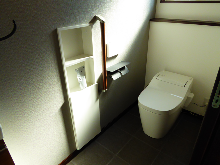 モダンなタンクレストイレは、すっきりとしたデザインでお手入れも簡単です。