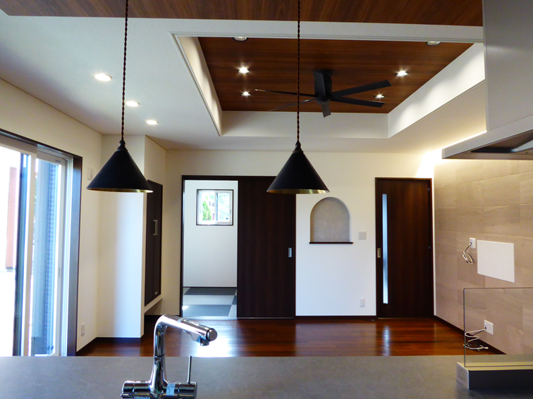 天井をあえて下げることで、空間にメリハリと特別感をプラスしました。